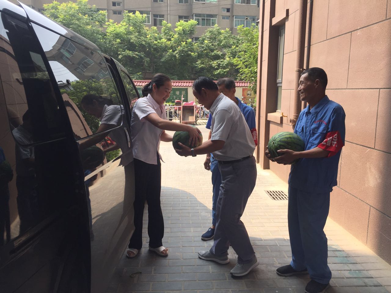 當(dāng)日上午,總經(jīng)理趙明海、工會主席常紅艷等人一行來到河南街、安谷苑、九冶、城投時代進行慰問,向一線職工送去800余斤西瓜。慰問組每到一處,親切詢問保安保潔的生活情況和工作狀況,叮囑他們要注意防暑降溫,并對保安保潔近期以來的勤懇勞動表示感激和關(guān)懷之情,叮囑他們在開展“創(chuàng)文”整治工作以來,保潔員隊伍人員少、天氣熱、任務(wù)重的情況下,在提高小區(qū)環(huán)境質(zhì)量的同時,要做好遮陽等保護措施,注意勞逸結(jié)合,預(yù)防中暑。