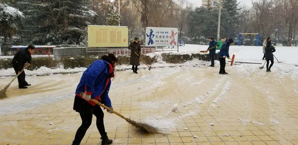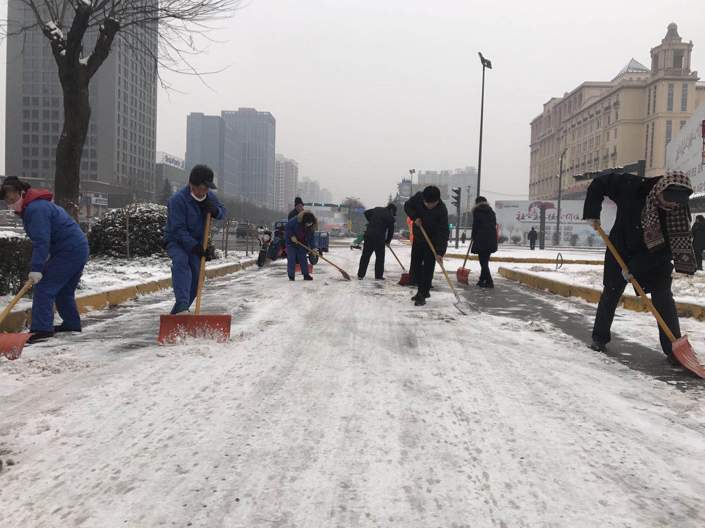 由于氣溫較低,主干道路的雪被壓得很瓷實(shí),清掃工作十分困難。天氣雖然寒冷,但是大家熱情高漲,即使手凍的通紅,也擋不住大家的干勁。都爭(zhēng)先恐后,團(tuán)結(jié)協(xié)作、井然有序,掃的掃、鏟的鏟,干勁十足,一心想著將路面的積雪盡快清除,經(jīng)過一天的奮戰(zhàn),基本將包抓路段、主干道積雪清掃干凈,確保了廣大居民、業(yè)主的出行安全。