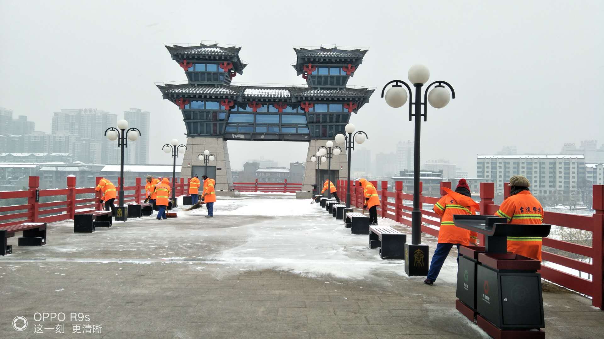 1月25日上午,為了確保道路暢通和業(yè)主的出行安全,城投物業(yè)全體員工冒著凜冽的寒風(fēng),在總經(jīng)理趙明海的帶領(lǐng)下,兵分三路,對(duì)古渡廊橋、小區(qū)主干道、包抓路段積雪進(jìn)行清除。