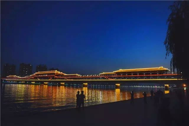 北起渭陽(yáng)路,南至渭河南岸,橫跨渭河,連通世紀(jì)大道的“古渡廊橋”,名字源自關(guān)中八景之“咸陽(yáng)古渡”,全長(zhǎng)748米,寬14米,是全國(guó)首座秦建筑風(fēng)格、雙層人行景觀(guān)廊橋,自建成以來(lái)立即成為我市地標(biāo)性文化景觀(guān)之一。[ 詳細(xì)內(nèi)容